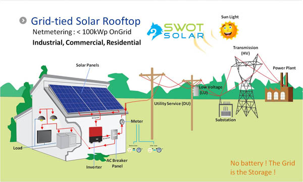 Solar grid tie inverter electrical system functions with the grid energy stored in the system that is linked to the mains. They provide excess capacity backed by the local electrical grids. In case of insufficient electricity, or not fully charged batteries electricity from the mains grid cover up the shortfall. The inverter monitors the alternate current mains for the supply of waveforms to generate electricity that's in the phase. The direct current electric system is devoted to the mains via this mechanism, as the local system phase is been matched, electricity from the mains assist during the shortfall or discharge in batteries.
